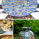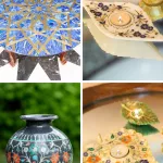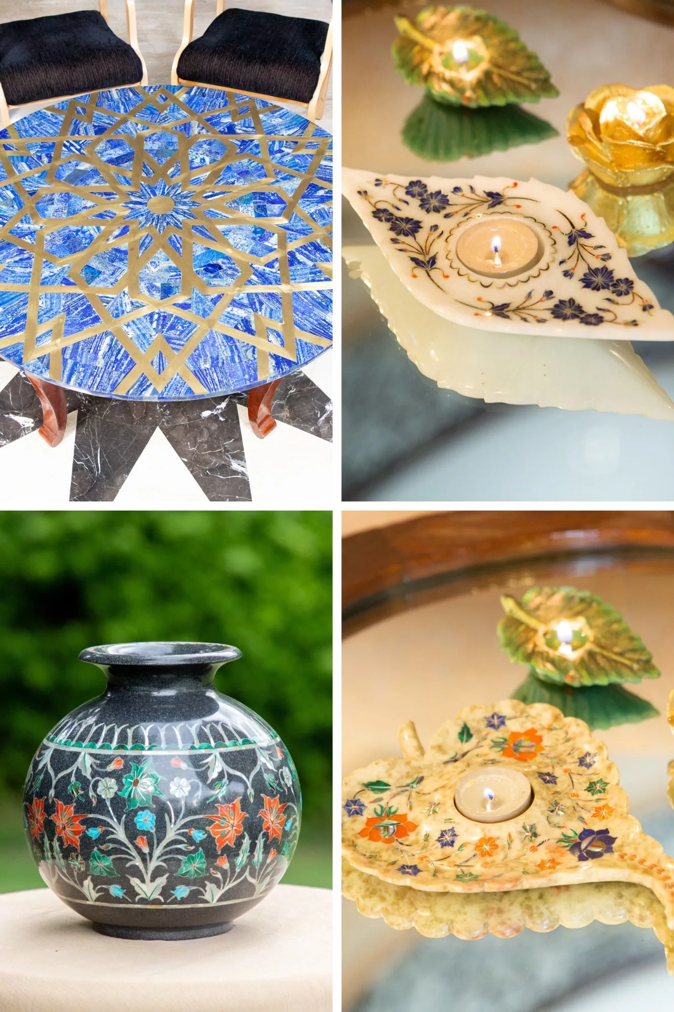 TABLE, PITCHER AND TWO CANDLE HOLDERS